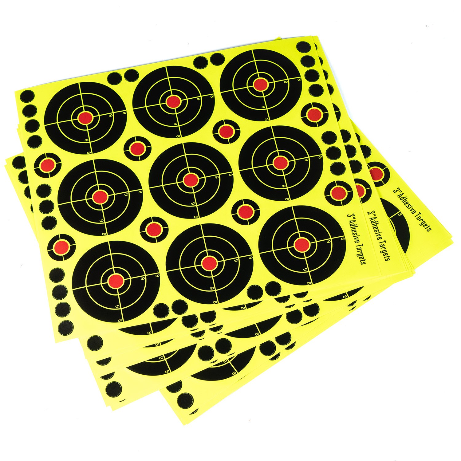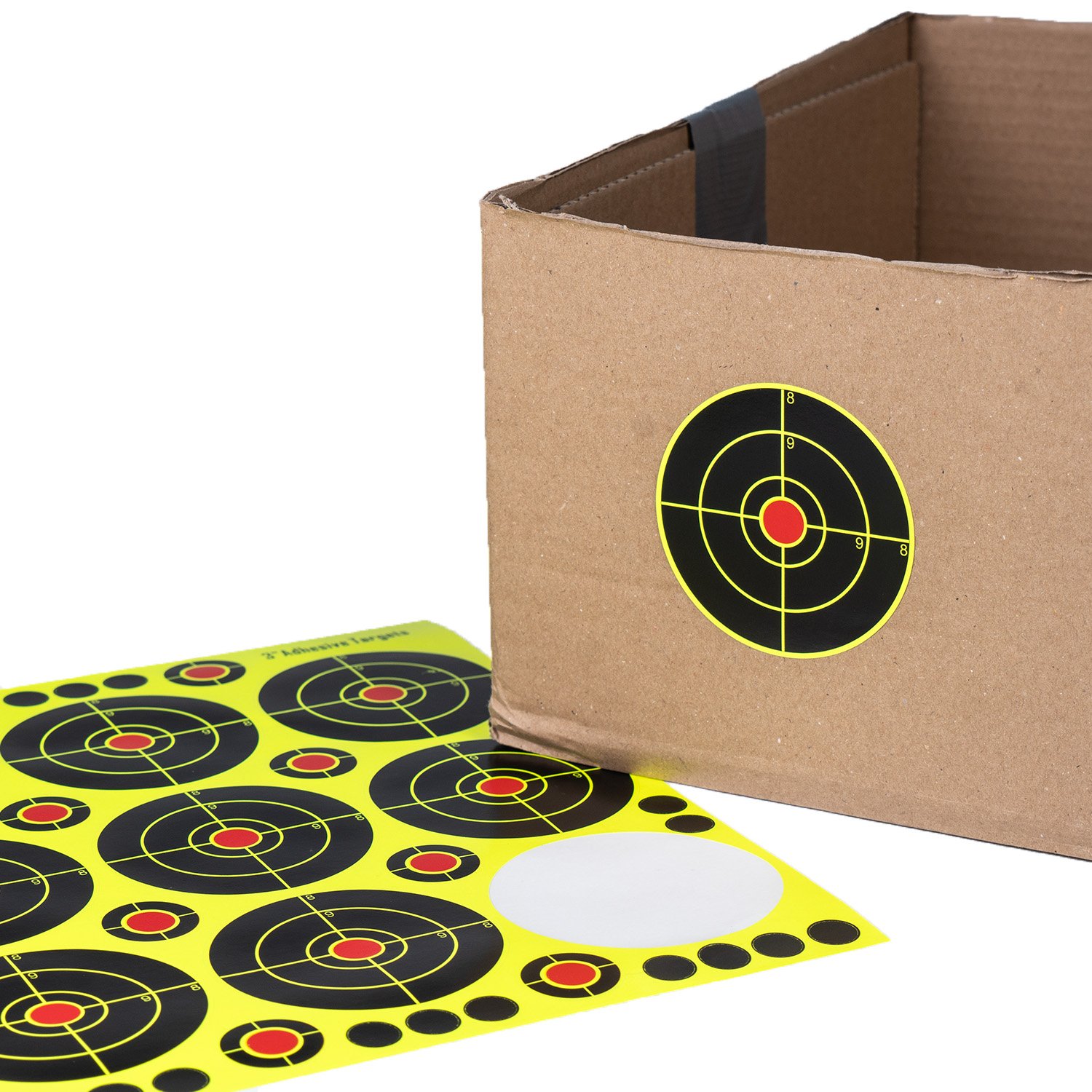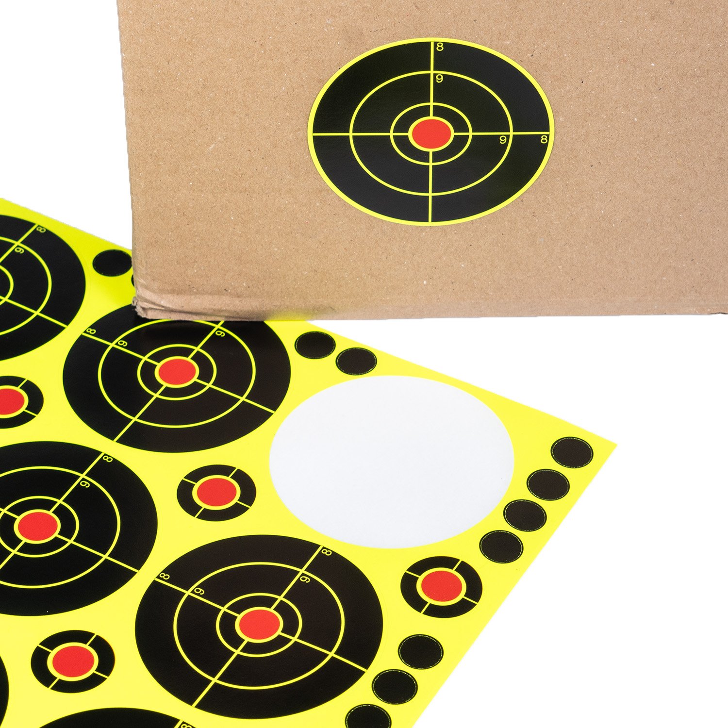 They are adhesive and can be set on any surface, cardboard being ideal. They are perfect for zeroing your scope and checking your grouping!