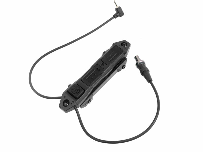 A dual pad switch for rifle flashlights and PEQ boxes that can be mounted either on Picatinny or slots.