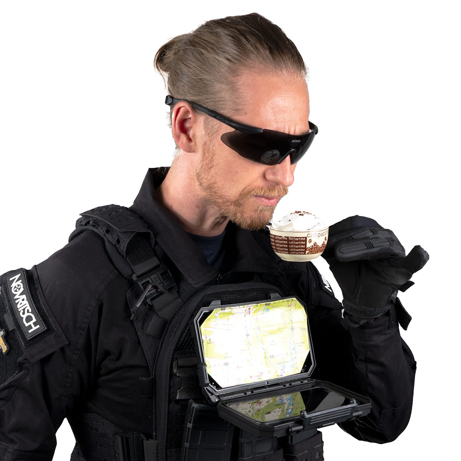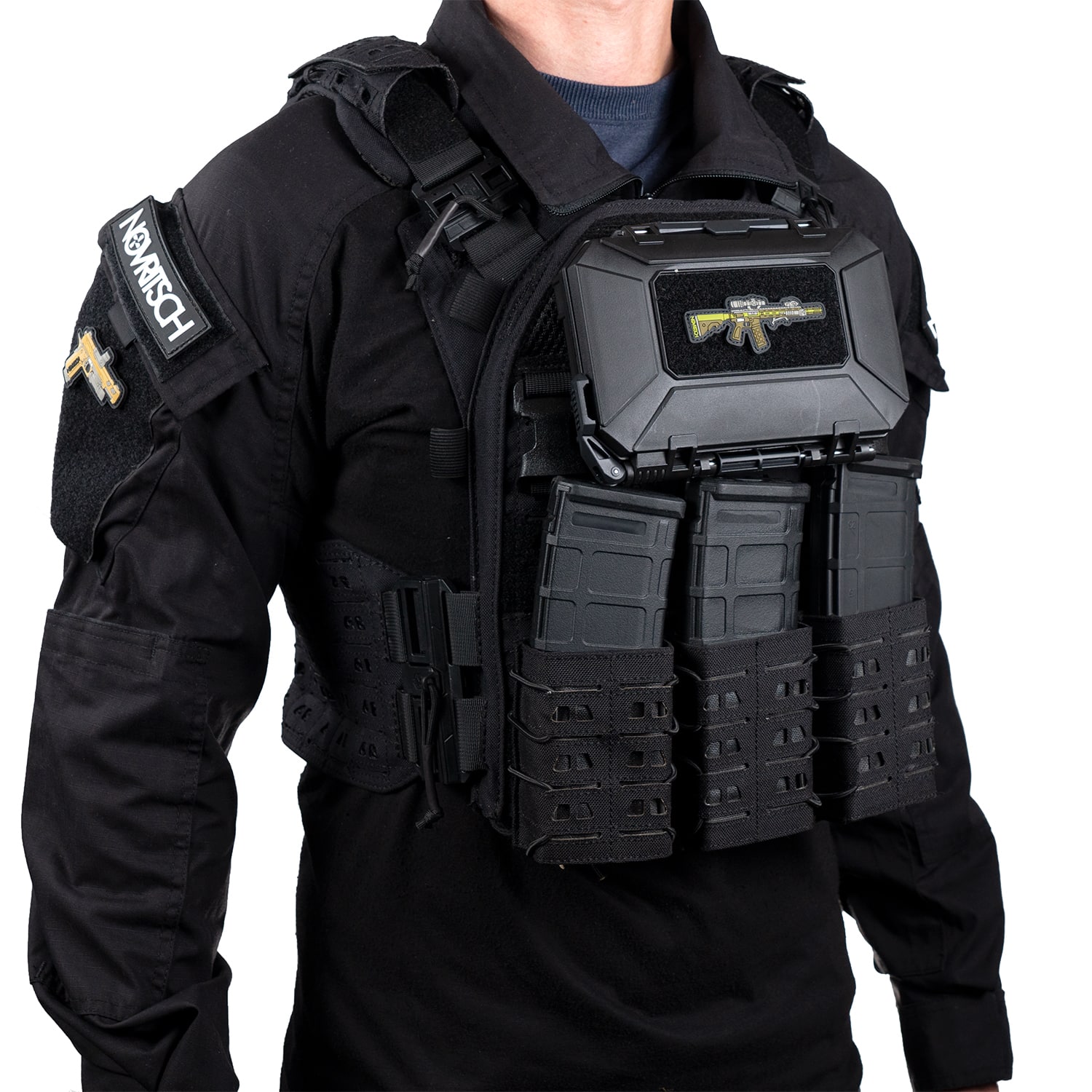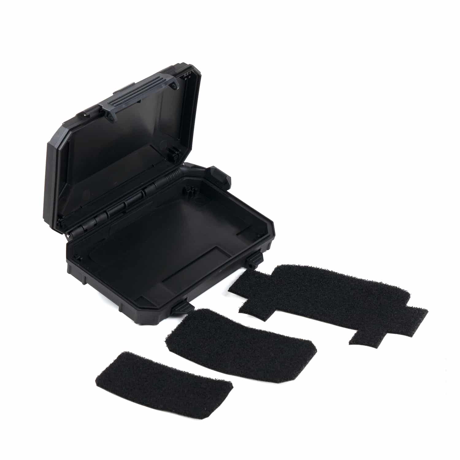 Hard-shell phone and utility case that carries and protects your valuable tech and gear from BB hits.