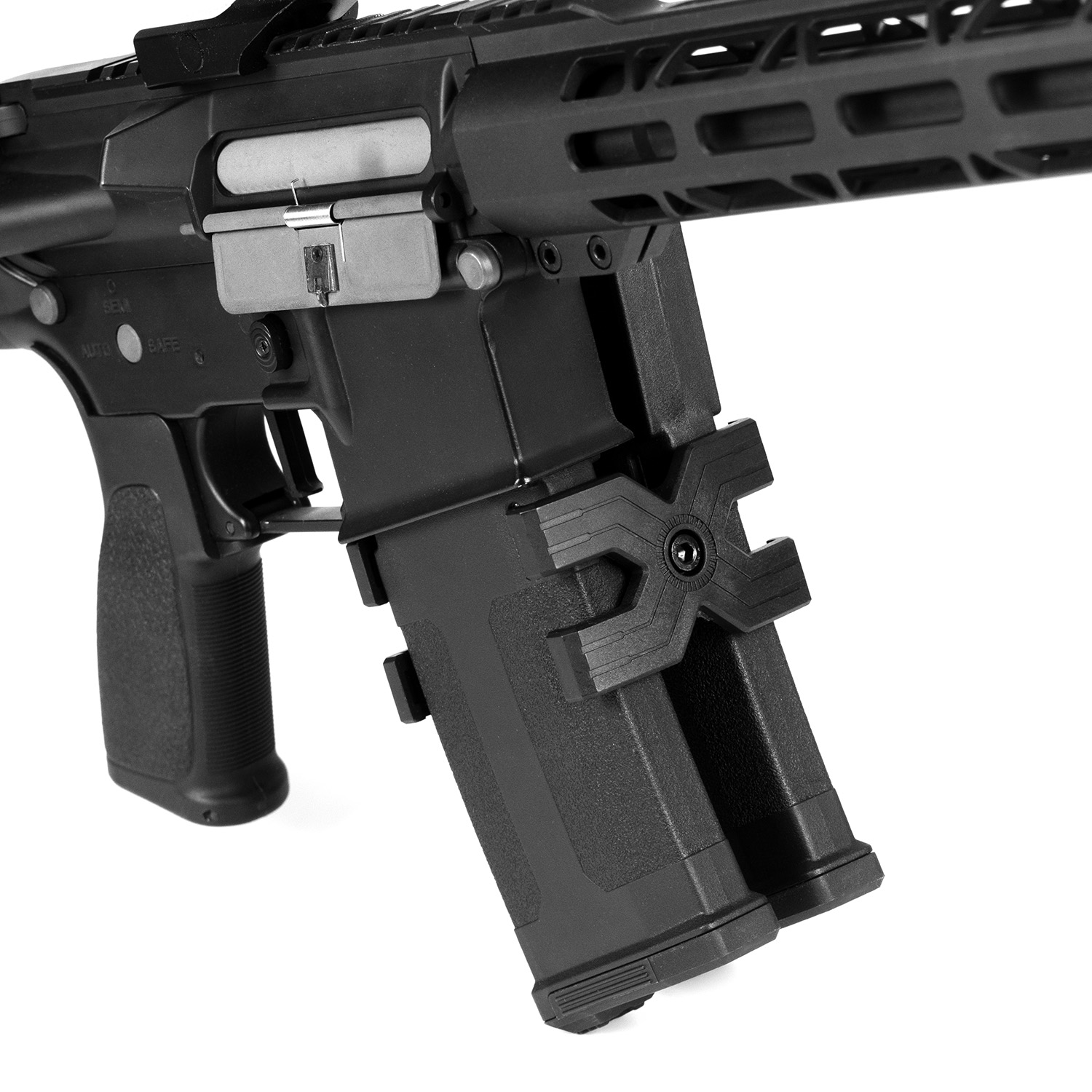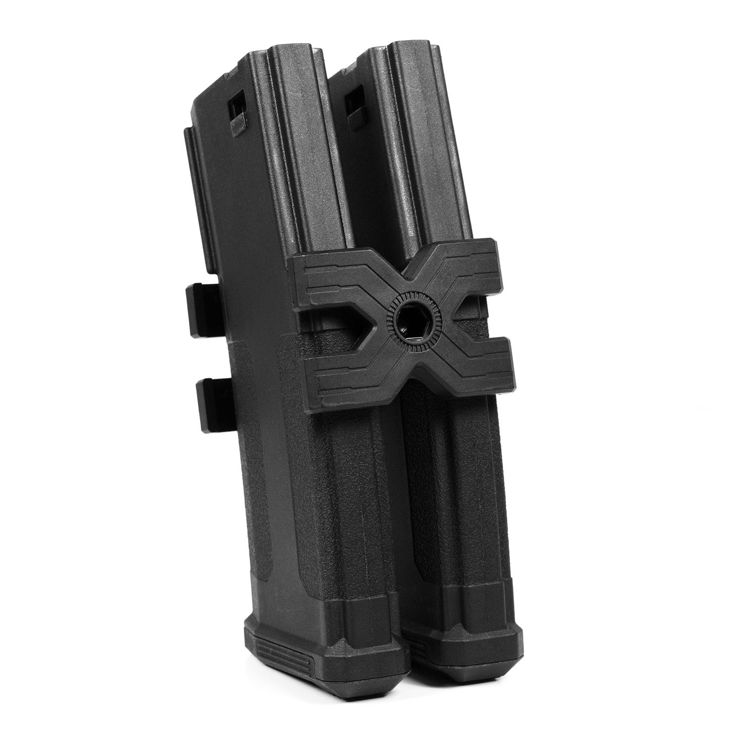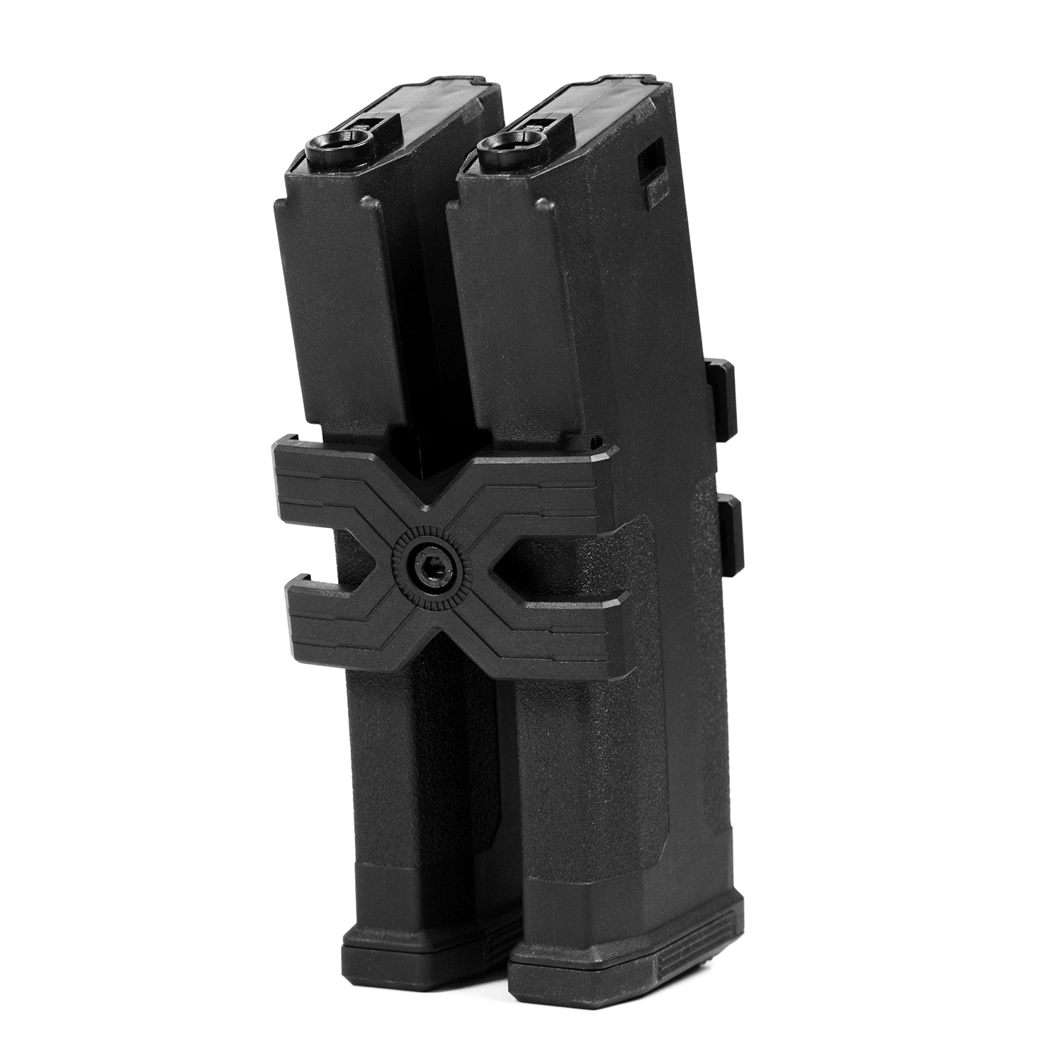 Quickly reload and double your ammo capacity with this magazine coupler. Compatible with most M4, AK, and double SSR9 mags, it features anti-slip rubber inserts that will keep everything locked in tight, while the Allen key adjustment ensures a secure fit.