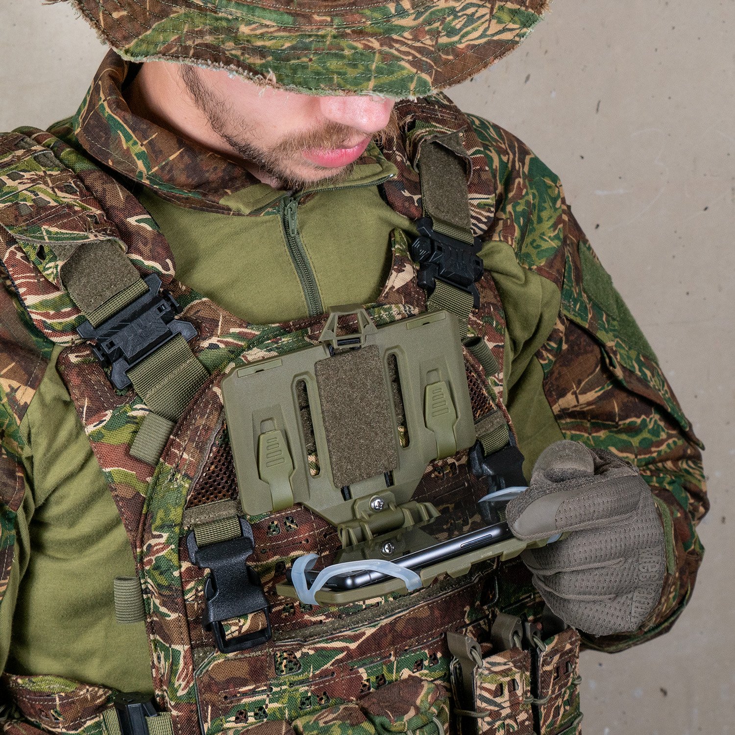The case secures your phone with four rubber bands on each corner and offers an extra velcro sticker that you can add to your phone case to keep it extra secure.