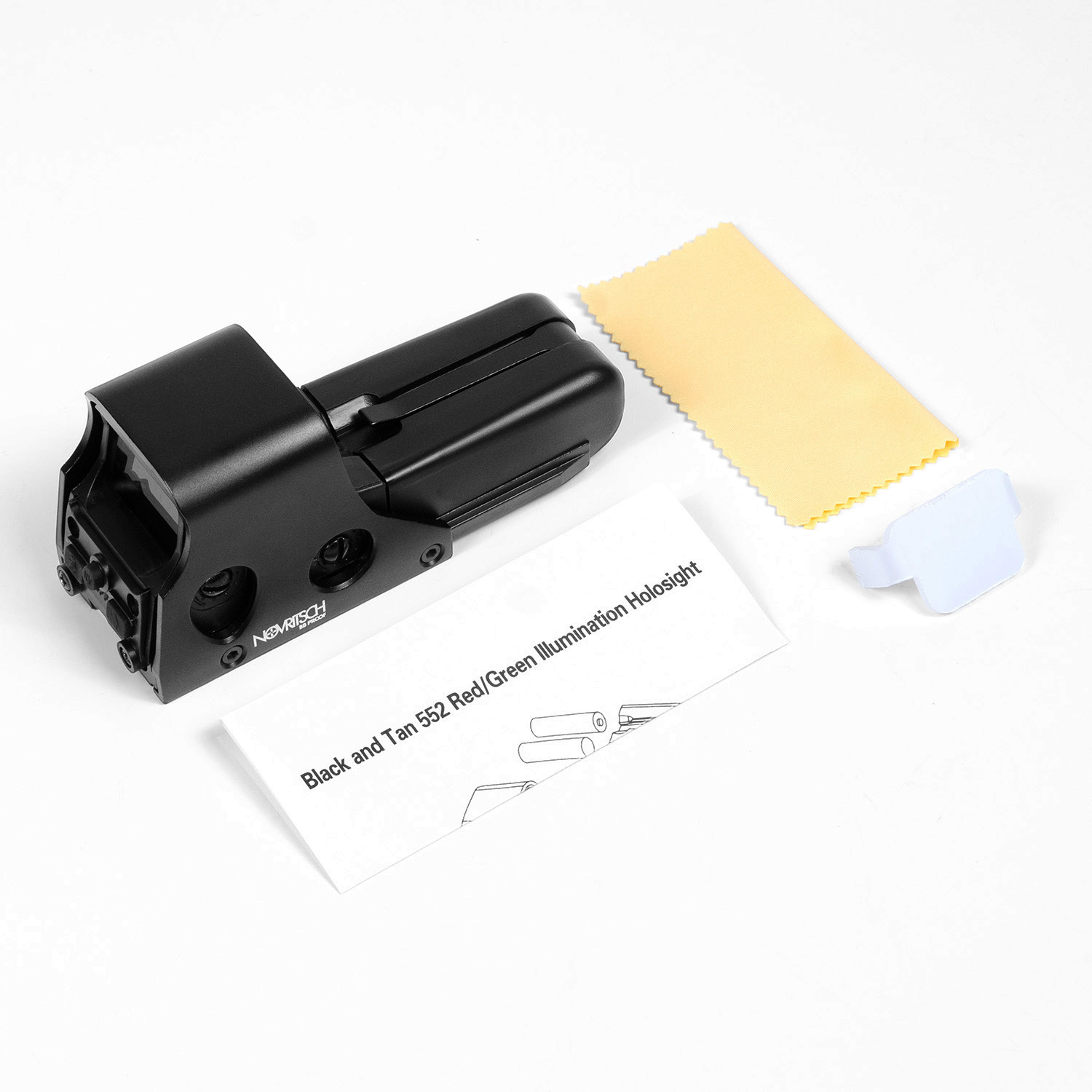 This red dot comes with a shield protector, a microfiber cloth, and an instruction manual.